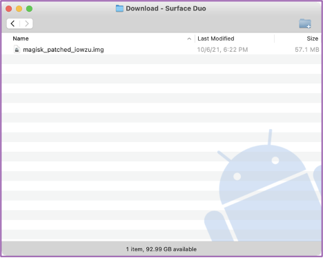 📱 Once Magisk is complete, you’ll see a patched img file in the Downloads directory on your Duo. We can see it here in AFT.